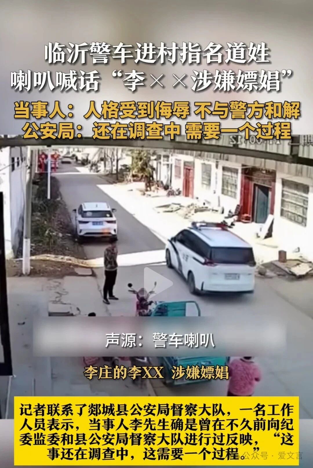 保人名誉,自古已然。新年假时,鲁省临沂郯城县杨集派出所数差人出,驱警车两辆入村,警笛高鸣,高声呼曰:村民李某涉嫖。其音高亢嘹亮,四邻八乡皆知,其言挑唆人心,街坊议论纷纷。李民无地自容,终无措也。乃寻上告状,曰:吾实无嫖娼之行,即有之,亦当依法处置。今警吏指名道姓,丑吾辱吾,置草民...