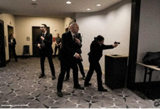 美利坚岁在丙午四月,国主特朗普赴白宫记者之宴,设席华盛顿希尔顿馆中。宾客云集,冠盖满堂,新闻之士、政府诸臣,咸列其坐。方入未久,忽闻枪声数发,堂上失色,众人伏几避祸。侍卫疾趋,拥国主及夫人、副主、近臣而出;一时筵席震扰,杯盘狼藉,欢语尽化惊呼。其后有司捕一嫌人,国主幸免,群臣无恙...